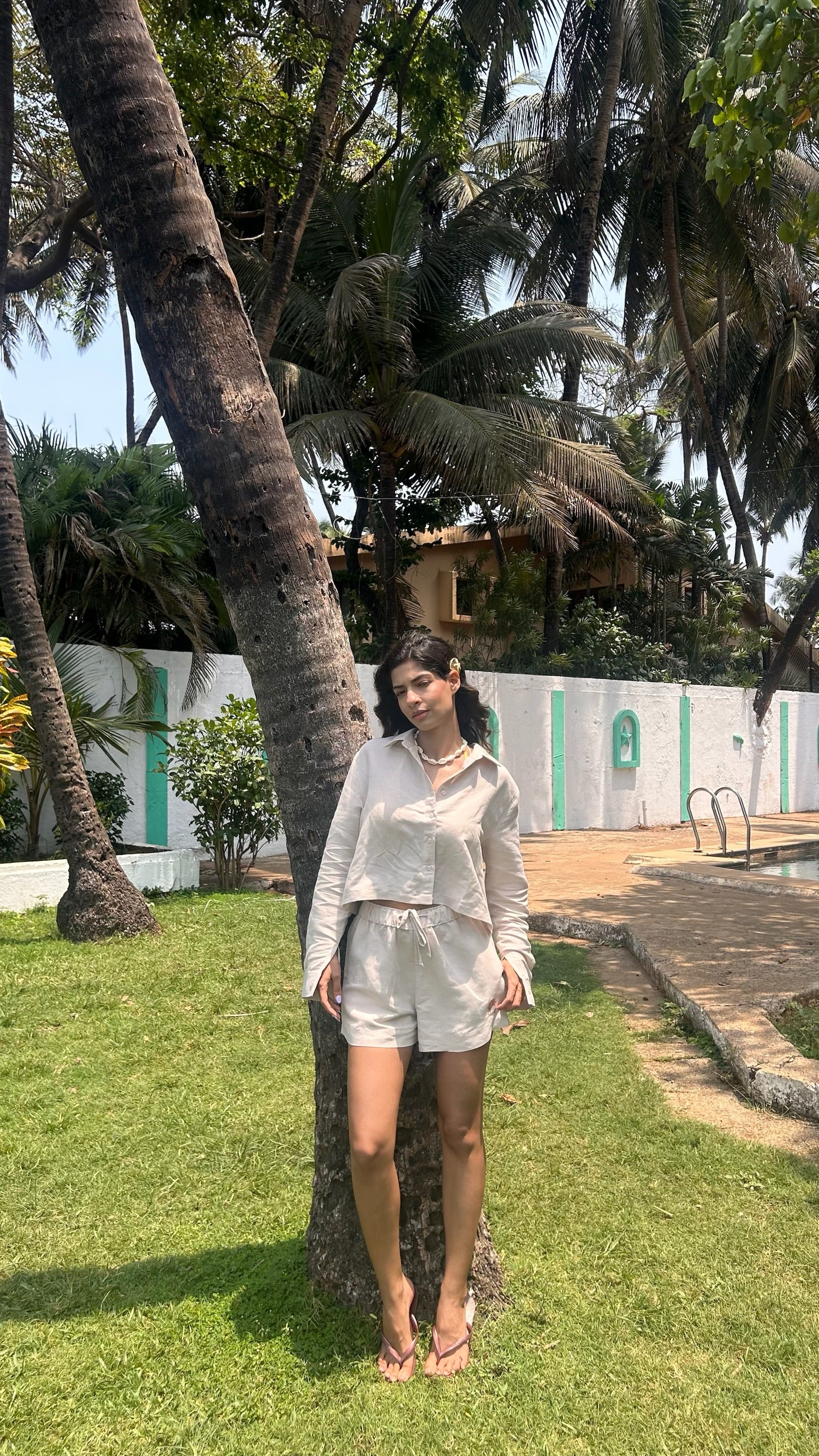 Definitely. The versatility of SS25 lies in its silhouettes, shorts, trousers, and shirts designed to be mixed, matched, and styled your way. Pair the shirt with trousers for a relaxed brunch look, or wear it open over a swimsuit for a beach-ready vibe. Whether you're heading to a picnic, the airport, or a dinner out, these pieces are built for ease and elegance across settings.